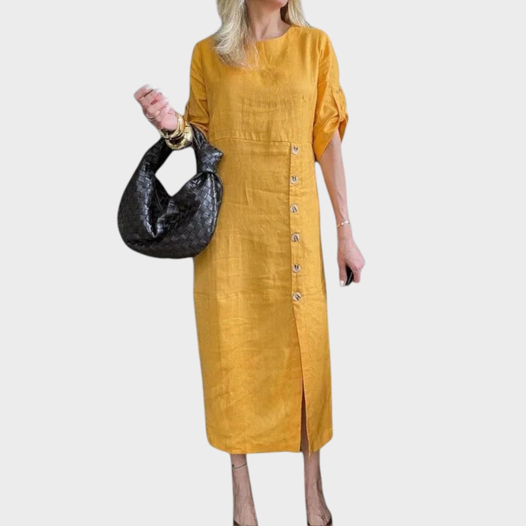 Adélia | Vestido De Algodón Y Lino Con Botones