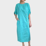 Con el vestido Adélia, cada paso se caracteriza por la ligereza y la elegancia. Confeccionado en una mezcla de lino, algodón y poliéster, ofrece frescura, comodidad y un toque sofisticado. Su diseño minimalista se realza con botones laterales, una sutil abertura y medias mangas ajustables, creando un look moderno y versátil que se adapta a cualquier ocasión. Además, cuenta con prácticos bolsillos y está disponible en varios colores pastel suaves, perfecto para un look refinado y atemporal.
