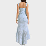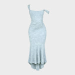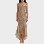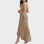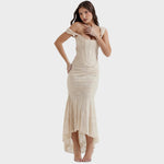 Sumérgete en la sofisticación con este vestido ajustado y de drapeado fino. Su elegante corte y delicada textura crean una silueta impactante. La elección perfecta para quienes buscan elegancia y un encanto refinado para ocasiones especiales o salidas nocturnas.