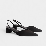 Intemporales, elegantes y con un toque femenino sin esfuerzo, los Tacones Esmeralda están diseñados para elevar tus looks diarios y de ocasión. Con su punta puntiaguda, correa slingback chic y tacón bajo, ofrecen comodidad durante todo el día con una sofisticación clásica.