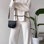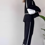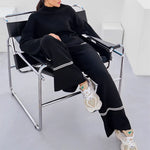 Explora la comodidad y la elegancia contemporánea con el Conjunto Kendall. El pantalón de cintura alta ofrece un ajuste que realza naturalmente la silueta, complementado por la practicidad de la cintura elástica. El suéter, con cuello semi alto y mangas largas, proporciona un estilo sofisticado y cómodo para el día a día. Ideal para mujeres que buscan un look moderno sin renunciar al confort, el Conjunto Kendall es perfecto para diversas ocasiones, ya sea para el trabajo o para un encuentro casual.