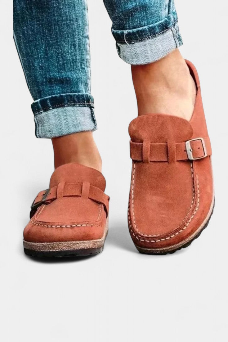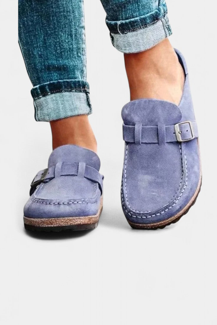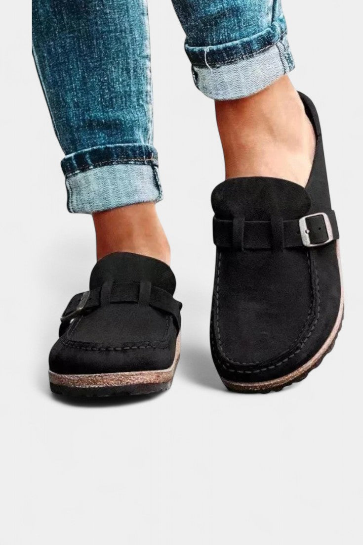 El estilo sin esfuerzo se encuentra con la comodidad diaria con los Zuecos Elora. Diseñados con una silueta atemporal, elegante correa con hebilla y un ajuste fácil de poner, ofrecen el equilibrio perfecto entre elegancia y practicidad, ideales tanto para salidas casuales como para días relajados en casa.
