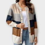 Perfecto para quienes buscan combinar comodidad con estilo. Este cárdigan presenta un diseño de botonera y rayas en bloque, añadiendo un toque vintage a tu guardarropa cotidiano. Se puede usar abierto con alguna prenda debajo o cerrado.