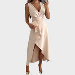 El vestido Mila es puro refinamiento con un toque de atrevimiento. Con escote en V, elegante corte asimétrico y delicada caída frontal, está diseñado para realzar la silueta con sofisticación. Ideal para eventos especiales, cenas elegantes o celebraciones en las que desee brillar con clase.
