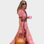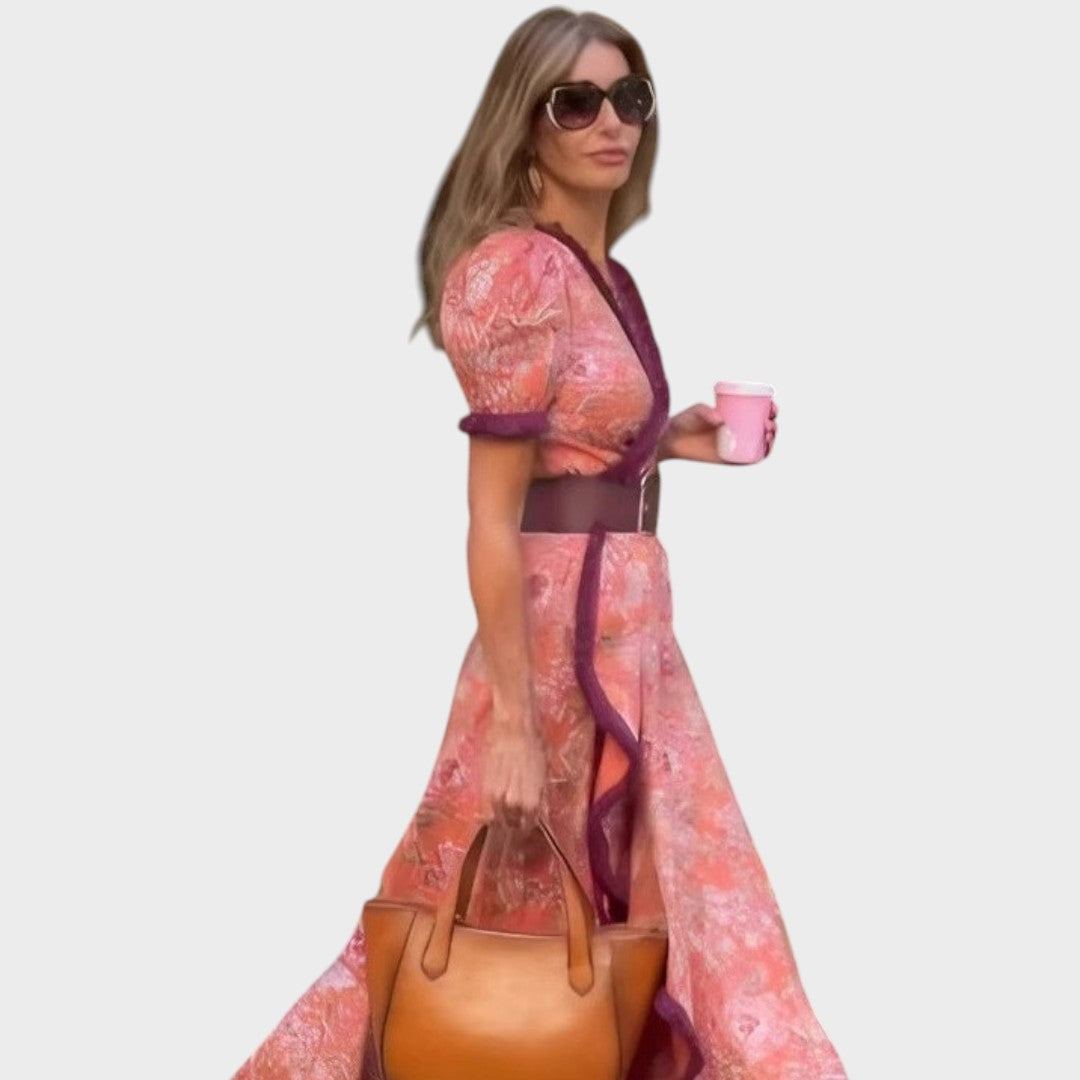 El elegante vestido largo rosa de manga corta aporta encanto atemporal y elegancia femenina a tu vestuario. Diseñado para ser fluido y realzar cualquier silueta. Perfecto para almuerzos, fiestas en el jardín u ocasiones especiales. Sencillez elegante en cada detalle.