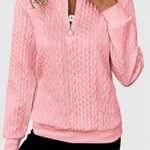 Moderno y versátil, el jersey Zulmira combina confort premium con un diseño minimalista. Su tejido de punto lujosamente suave y el detalle de cremallera pulida lo convierten en una prenda que transita sin esfuerzo entre lo casual y lo elegante. Una pieza esencial para quienes buscan estilo refinado y comodidad cotidiana.
