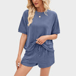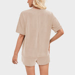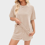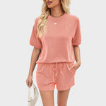 El conjunto Esmeralda presenta tonos vibrantes con textura acanalada, compuesto por una camiseta de manga corta y un pantalón corto con cordón ajustable. El tejido suave proporciona comodidad y ligereza, ideal para días calurosos o tiempo libre. El diseño contemporáneo y el corte casual realzan cualquier estilo, permitiendo combinaciones versátiles. Perfecto para quienes buscan un look casual con un toque moderno.