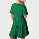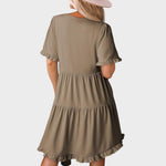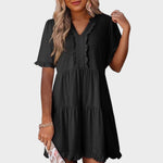 Te presentamos el vestido corto informal Barbara con cuello en V. Este vestido combina comodidad con versatilidad chic, por lo que es la elección perfecta para cualquier ocasión, desde un brunch con amigos hasta una salida nocturna.