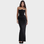 Con el vestido Flora, combinas un glamour natural con una feminidad pura. Su diseño sin tirantes realza el cuello y moldea la silueta con delicadeza, sin forzar la figura. Su tejido flexible y de alta calidad se adapta como una segunda piel, brindándote una sensación de ligereza y libertad.