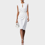 Un equilibrio perfecto entre sencillez refinada y versatilidad cotidiana. El vestido Moana presenta un corte limpio con cuello redondo y cintura definida, ideal para crear looks elegantes sin esfuerzo. Su diseño de color sólido y su largo midi lo convierten en una prenda fácil de combinar para la oficina o eventos formales.