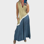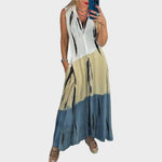 Diseñado para mujeres que valoran la libertad de movimiento, un look auténtico y tejidos ceñidos, este vestido combina arte y ligereza en un diseño moderno y desenfadado. Con un diseño holgado sin mangas y un escote en V estructurado, ofrece un ajuste perfecto y una frescura absoluta.
