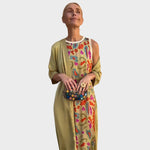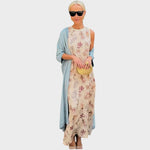 Este conjunto de dos piezas de vestido y kimono estampado fue creado para mujeres que buscan un look fresco y muy elegante para los días de verano. El diseño lúdico combinado con un corte aireado crea un look completo y relajado.