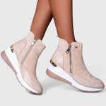 Conoce las botas Núria, diseñadas para unir comodidad de soporte y estilo listo para el invierno. Con un suave forro interior, cremallera lateral funcional y una suela de cuña para comodidad durante todo el día, estas botas ofrecen el calor que necesitas y el look que amas. Ya sea que salgas a dar un paseo o enfrentes un día ajetreado, Nellie te mantiene firme, con estilo y cómodamente.