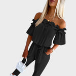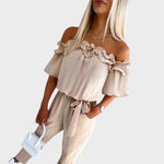 Apuesta por un estilo desenfadado con Joana, el mono con volantes y lazo en la cintura, que combina elegancia y comodidad para el día a día. Con su seductor escote de hombros descubiertos y su cintura estilizada, esta versátil prenda es perfecta para cualquier ocasión: llévala con tacones o con sandalias para un look relajado y soleado.