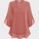 La blusa Marisa destaca por su corte fluido y sofisticado, ideal para quienes buscan un look elegante con comodidad. Fabricado con una tela ligera y suave al tacto, presenta mangas anchas y semitransparentes que añaden un toque femenino y moderno. El escote en V con delicado corte realza la silueta y ofrece un look refinado. Versátil y atemporal.