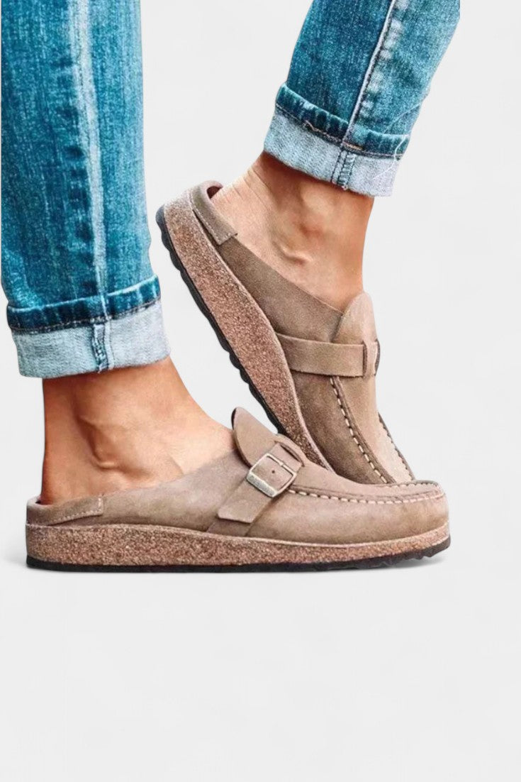 El estilo sin esfuerzo se encuentra con la comodidad diaria con los Zuecos Elora. Diseñados con una silueta atemporal, elegante correa con hebilla y un ajuste fácil de poner, ofrecen el equilibrio perfecto entre elegancia y practicidad, ideales tanto para salidas casuales como para días relajados en casa.