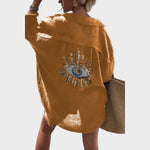 Selena es una camisa que combina simbolismo y estilo. Con un bordado inspirado en el ojo protector y delicados detalles de lentejuelas y cuentas, le da un toque sofisticado y femenino. Su tejido ligero y corte holgado la convierten en la prenda ideal para los calurosos días de verano o como segunda capa para los días menos soleados.
